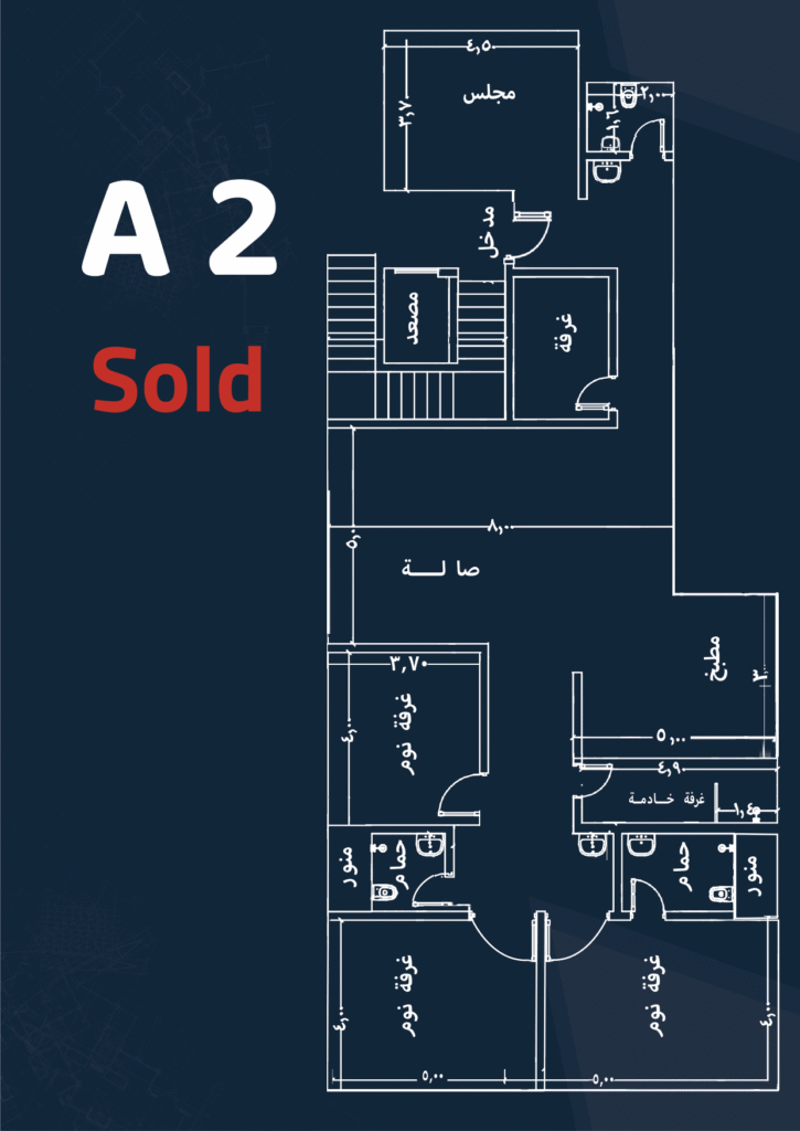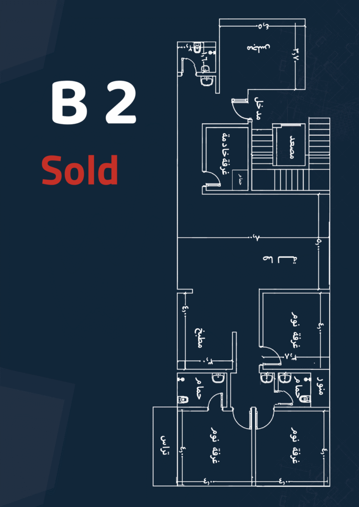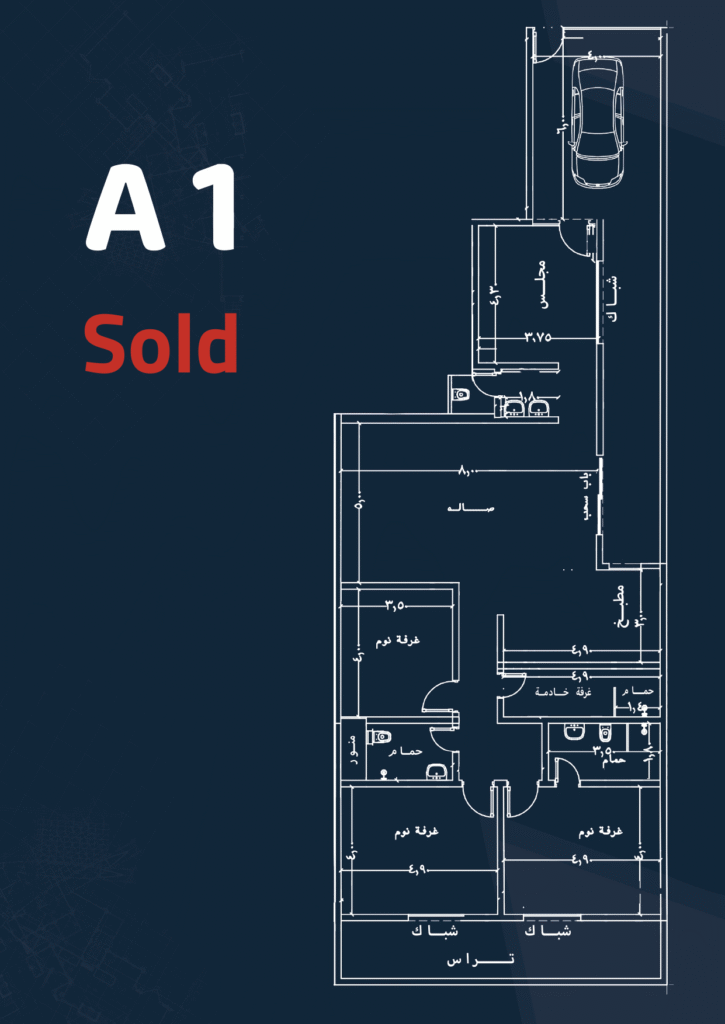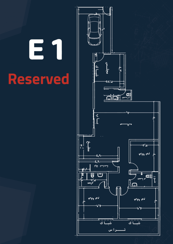 Specifications: Front façade – Maid’s and laundry room – 4 bedrooms – 4 bathrooms – Living room – Majlis – Private parking – Driver’s room – Kitchen.